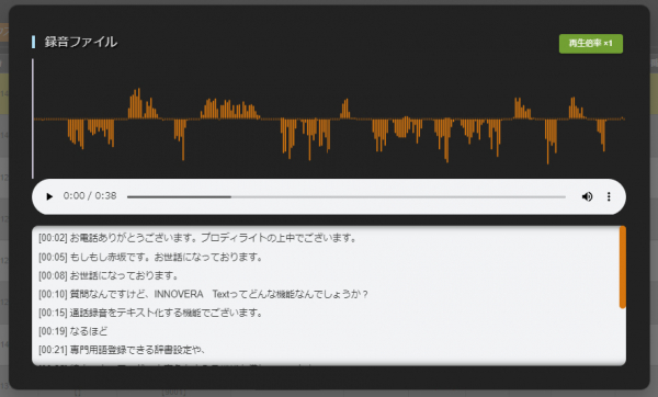 通話において発言した部分が波形で表示されるようになり、会話全体から発言した部分をすぐに視認できるようになりました。
