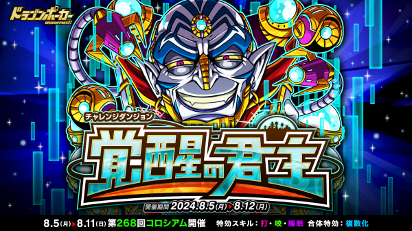 株式会社アソビズム(本社:東京都千代田区、代表取締役:大手智之)は、App Store・Google Playにて 好評配信中のリアルタイム合体カードバトル『ドラゴンポーカー』で、2024年8月5日(月)より復刻チャレンジダンジョン「覚醒の君主」を開催いたします。