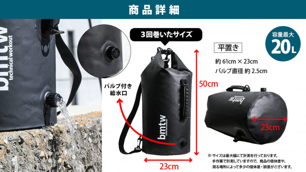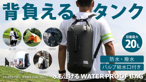 BODYMAKERが新作「ウォータープルーフバッグ 給水口付き」を発売する。この商品は、耐久性や防水性に優れ、ターポリン生地で手触りが柔らかく、しかも軽量でコンパクト。ロールトップクロージャー構造で、入口を3~4回しっかり巻いて両端をバックルで留めることで、水や湿気から中身を守ります。また災害緊急時には大容量の防災バッグとして。そしてバッグ内部に水を入れることで「大容量20リットルの背負えるタンク」にも。給水口付きなので手洗い・シャワーなどに使用可能です。水を入れても背負えるので、負担が軽くてすみます。他にも同じように入口を3~4回しっかり巻いて両端をバックルで留めることで浮袋としても使用できます。背負いやすいサイズなので男女兼用。「ウォータープルーフバッグ 給水口付き」がついに発売!8月19日(月)まず、応援購入サイト「Makuake」出店からスタートします。