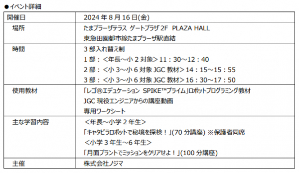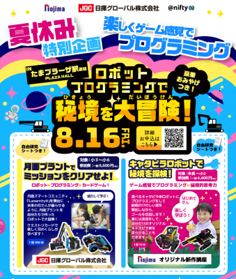 2024年8月16日(金)に、東急田園都市線たまプラーザ駅直結たまプラーザテラス ゲートプラザ2F PLAZA HALLにて開催される夏休みイベントにて、本教材を体験(有料)いただけます。