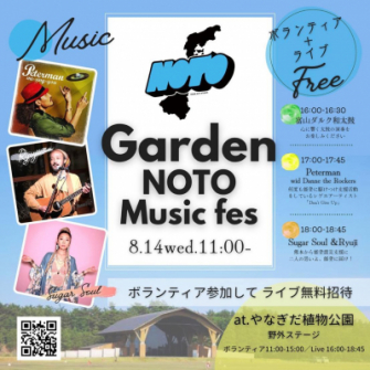 一般社団法人ボディセンス・インスティテュートと能登震災支援活動団体 能登にエールは、8月14日(水)・17日(日)の2日間に「GARDEN NOTO Fes 2024」の音楽イベントを開催します。