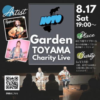 14日(水)は、能登町やなぎだ植物公園にて野外音楽イベントを行い、17日(日)は、富山市ほとり座ライブホールにてチャリティ音楽イベントを行います。