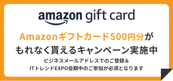 今回、ITトレンドEXPOに参加登録をしていただいた先着1万名様にAmazonギフトカード500円分をもれなくプレゼント※がございます。