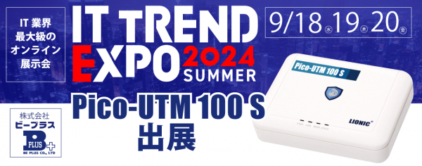 ビープラスは本展示会にて「Pico-UTM 100 S」を展示しておりますので、ご来場者様のセキュリティの課題解決にお役立ていただければと存じます。