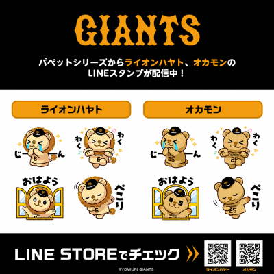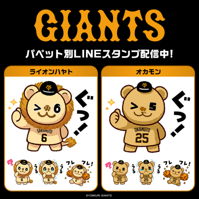 記念すべき第1弾は、坂本勇人選手の「ライオンハヤト」と、岡本和真選手の「オカモン」の2点の配信となり、どちらも株式会社インクルーズが描き起こした特別なデザインとなっております。