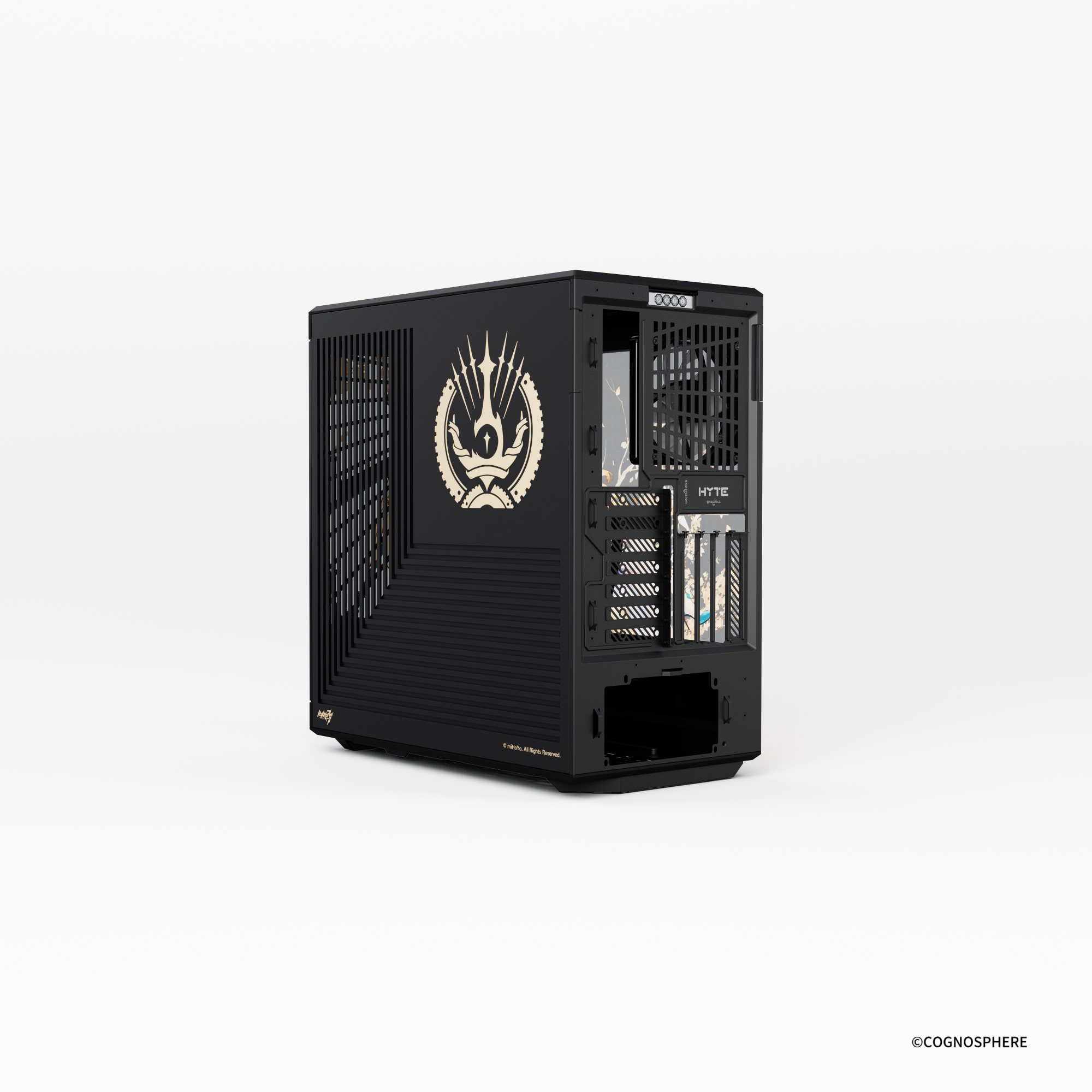 Y40 Songque Limited Editionは、「崩壊3rd」とHYTEのコラボレーションで誕生した、HYTE製ミドルタワーケース Y40の「松雀(瞞天嬉遊・旭影)」限定モデルです。独自のピラーレス式パノラマガラス全面に余すところなくプリントされた描き下ろしイラストに加え、オリジナルアイコン付きの電源ボタンやシリアルナンバー刻印付きのプレートを搭載。グラフィックカードのイルミネーションを最大限活用できる垂直搭載用のライザーケーブルも付属し、お好みのPCパーツやイルミネーションと組み合わせることで、世界で一つだけのPCを作ることができます。松雀のサングラスなどをモチーフにしたファンシュラウドが付属し、市販の120 mmファンや140 mmファンに対応します。描き下ろしイラストのオリジナルタペストリーも付属。