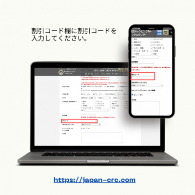 ご予約は「Japan C.R.C.」サイトもしくはアプリからとなります。ご予約時、割引コード入力欄にご入力ください。