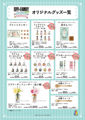 今回のコラボイベントのために新たに描き下ろされたフォ―ジャー家たちがデザインされたオリジナルグッズを全38アイテム販売しております。全長47cmのとっても可愛いボンドのぬいぐるみティッシュケースをはじめ、オリジナルデザインのフォージャー家が描き下ろされた厚手レジャーシートやネッククーラー、アーニャとボンドそれぞれをイメージしたフード付きタオルやレインポンチョなど、お出かけにピッタリのオリジナルグッズが多数登場中!オリジナルグッズを2000円以上お買い上げいただいたお客様には、オリジナルクリアカード(ランダム/全8種)をプレゼントいたします。