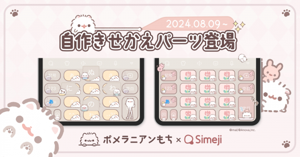 エイノバ株式会社(本社:東京都千代田区、代表取締役社長:安倍義人)がマネジメントする人気キャラクター「ポメラニアンもち」が、キーボードアプリ「Simeji」と初コラボした自作きせかえパーツを2024年8月9日(金)にリリースしました。