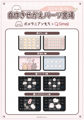 今回のコラボでは、ポメラニアンもちとその仲間たちが自作きせかえパーツとして登場。キーボードに設定すれば癒し効果抜群!ポメラニアンもちと毎日を楽しく過ごそう♪