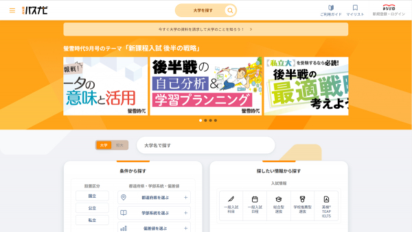 月刊『螢雪時代』は1932年創刊の歴史ある受験情報誌であり、最新の入試情報や受験対策、大学選びのアドバイスなどを掲載し、受験生のみなさまにとって欠かせない情報源として、さらに大学受験生の毎月のペースメーカーとしてご愛読いただいております。このたび、より多くの受験生に質の高い情報を提供するため、「大学受験パスナビ」を通じて月刊『螢雪時代』の記事をお届けすることとなりました。まずは『螢雪時代 9月号』から厳選された記事を掲載し、順次記事の拡充を行っていきます。