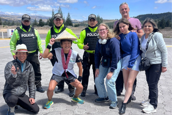 エクアドルに入ってからは赤道を歩いてまたぎ、休養日にはガラパゴス諸島を訪れてリラックス。さらには現地のトレイルレースを走り、ふと見かけた「エクアドルの富士山」に登ろうと、標高5,000m超の山岳地帯に足を伸ばしたことも。日々70km前後を走っているにもかかわらず、その元気さは衰えを感じさせません。