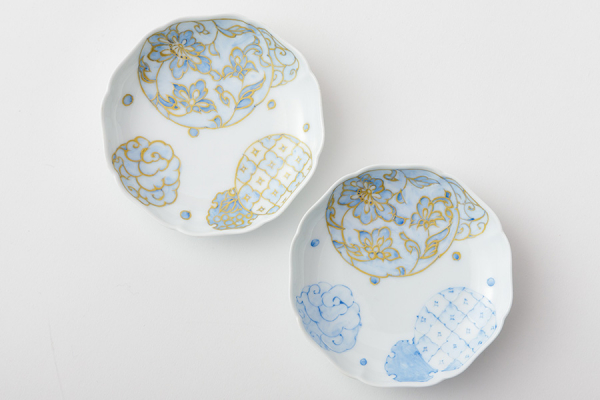 三川内焼の美しい白磁に描かれた藤本さんの絵柄に、思い思いに描く金彩は、藤本さんとあなたのコラボレーションによる、まさに世界に一枚しかない豆皿が出来上がります。三川内焼の醍醐味にふれ、是非あなたも貴重な一枚を手にしてください。