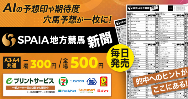 株式会社グラッドキューブ(本社:大阪市中央区 代表取締役 CEO 金島 弘樹)は、AI競馬予想サービス「SPAIA競馬」における地方競馬コンテンツを再編集した「 SPAIA地方競馬新聞」の、eプリントサービスでの販売を2024年8月15日(木)より開始いたしました。本サービスにより、24時間365日、いつでも SPAIA競馬の地方競馬コンテンツを紙面でご利用いただけます。