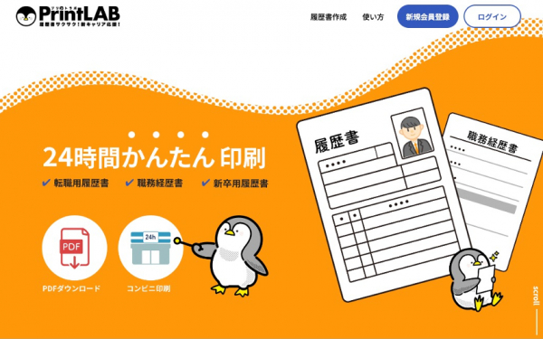履歴書や職務経歴書を、WEB上で簡単に作成・プリントできるオンラインサービスです。