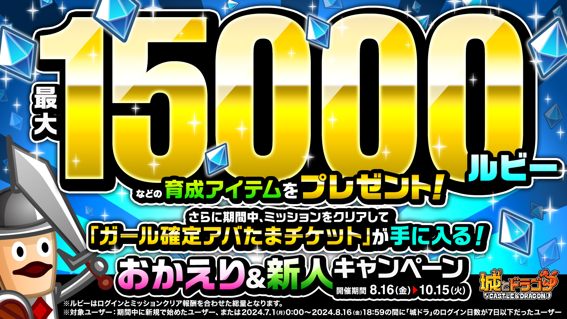 8月16日(金)より、対象ユーザーに最大15,000ルビーや「金の友トレ倶楽部」などが贈られる「おかえり&新人キャンペーン」が開催中です。期間中に、対象ユーザー向けのミッションをクリアすると「ガール確定アバたまチケット」も手に入ります。