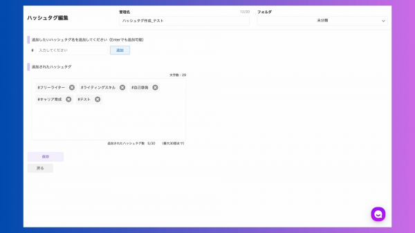 ※1つのテンプレートに追加できるハッシュタグの数は最大30個です。