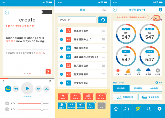 - 自分が苦手な単語に絞った集中リスニングで、学習時間を効率化!