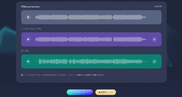 ステップ2. AIアルゴリズムにより、ボーカルが自動的に認識、抽出されます。