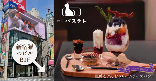 2021年9月16日(木)にオープンした、新宿の新名所「3D巨大猫」が放映されている、クロス新宿ビル地下一階にあるレトロモダンな喫茶店。