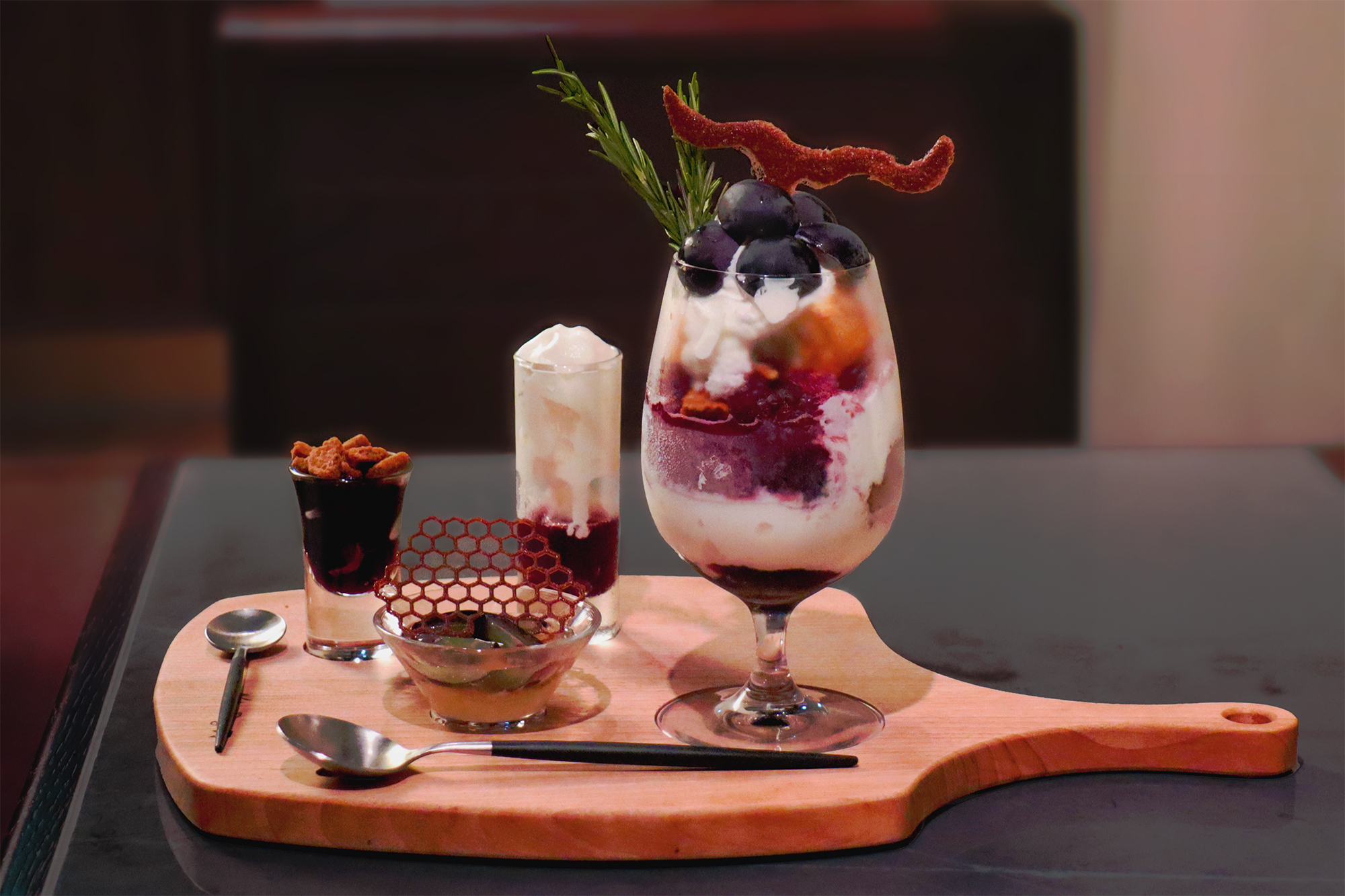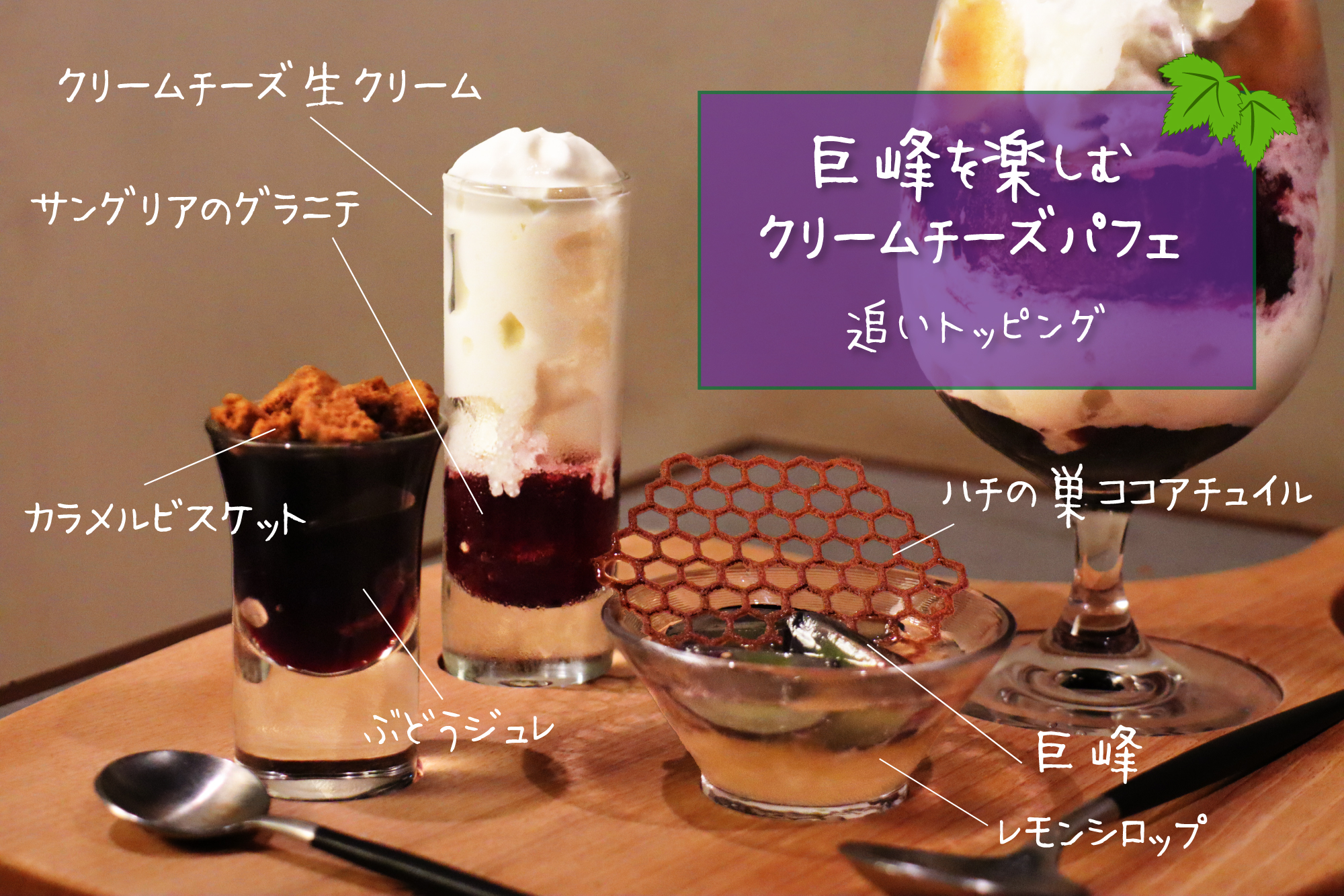 味わいは、旬を迎える巨峰の爽やかな味わいを中心に、風味豊かな蜂蜜と、なめらかなクリームチーズの生クリームを加えました。このペアリングは、まるで赤ワインとのマリアージュを楽しむような、大人の贅沢で心地よい味わいをお楽しみいただけます。