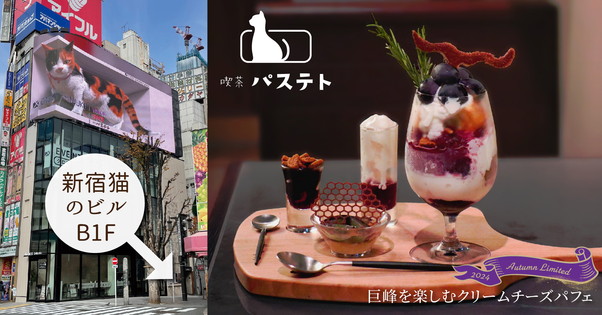 株式会社アズフードシステムズ(本社:東京都中央区、代表取締役:森田威)が運営する、新宿駅東口すぐの喫茶店「喫茶 パステト」は、昨年好評を博した『巨峰を楽しむクリームチーズパフェ』を、2024年8月23日(金)より期間限定で発売いたします。クリームチーズと蜂蜜の風味が巨峰の味わいを引き立て、まるでワインのマリアージュを楽しむように、大人の味わいを楽しめるパフェです。