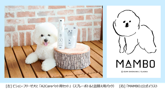 全日空商事株式会社(本社:東京都港区、代表取締役社長:宮川純一郎)は、当社が総販売代理店を務める「A2Care(エーツーケア)」の除菌消臭スプレーに、人気キャラクターMAMBOコラボデザインのペット用スプレーボトルと詰替えがセットになった商品を販売します。8月20日(火)より、楽天市場A2Care公式オンラインショップにて先行で予約販売を開始し、9月より順次販売チャネルを拡大していきます。