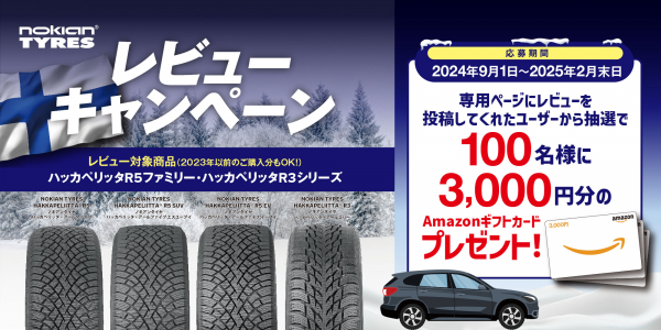 この度株式会社阿部商会(本社:東京都千代田区、代表取締役:阿部 文保)では、2024年9月1日から 2025年2月末日までの期間『ノキアンタイヤ・レビューキャンペーン2024』を実施いたします。