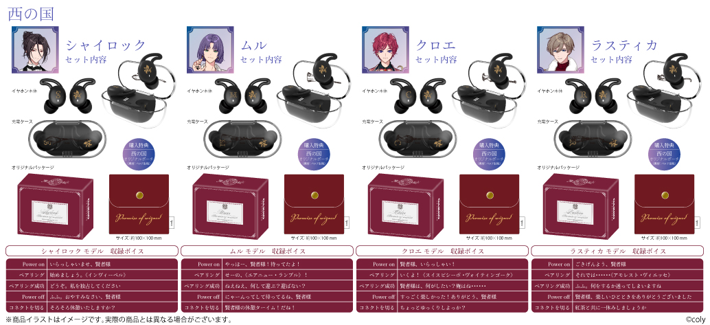 「CP-TWS01D」と株式会社colyが運営する今年11月にリリース5周年となるスマートフォン向けアプリゲーム『魔法使いの約束』から「西の国」「南の国」全8キャラクターとのコラボレーションモデルの受注販売を致します。