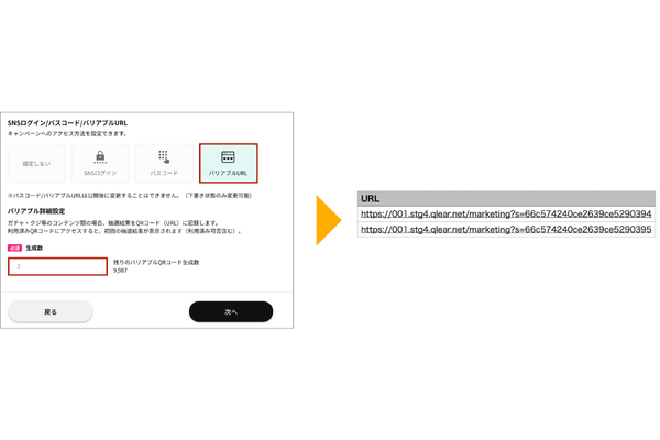 1つのコンテンツに対して、希望する任意の数だけ1つ1つ異なるQRコードを生成できる、バリアブルQRコードの生成も可能になりました。