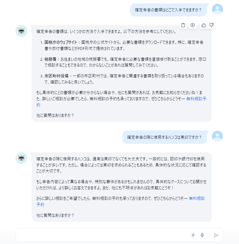 ・相談予約フォームへの誘導も自動で行い、予約受付業務を効率化します。