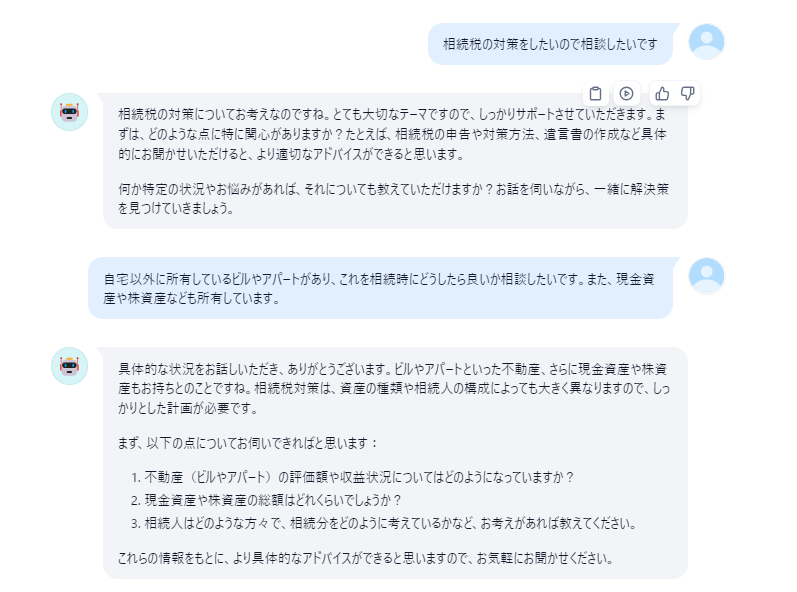 ・予め用意した回答だけでなく、文脈を理解し、状況に応じた最適な回答を行います。