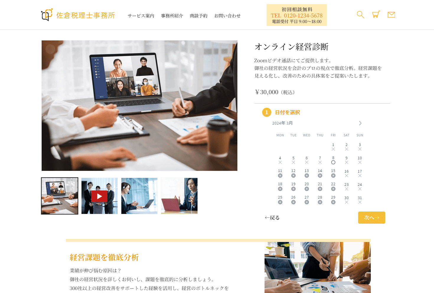 新規顧客の獲得に特化したサイト構成で、無料・有料でのZoomオンライン相談を提供可能な予約サイトを構築します。