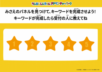 「クレヨンしんちゃんアドベンチャーパーク」内に設置されたキーワードパネルを探しながら、“野原みさえのメッセージ”を探して回るゲーム。みさえからのメッセージを見つけ出し受付のスタッフに伝えると、みさえを中心に仲良く集合した野原家がプリントされた、ニジゲンノモリ限定のシールをプレゼント。