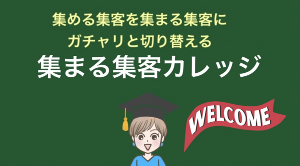集める集客を集まる集客にガチャリと切り替える、集まる集客が動画で学べるオンラインサロンです。