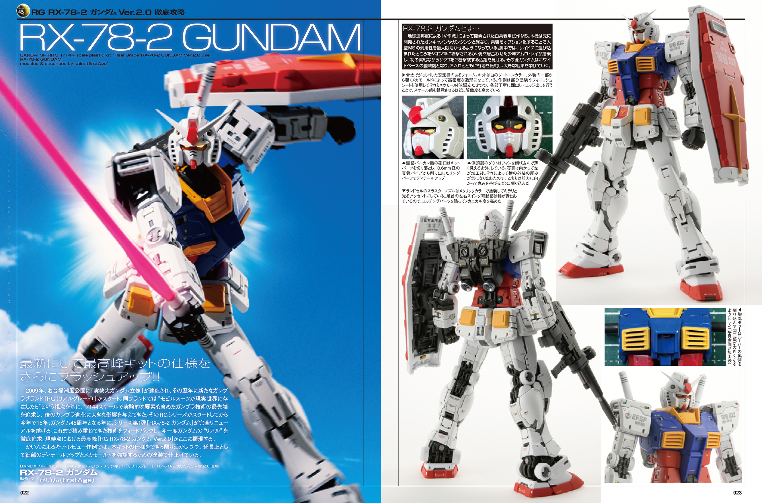 本特集では、BANDAI SPIRITS ホビーディビジョン開発担当者インタビューや「RG RX-78-2 ガンダム Ver.2.0」を使用した3段階のレビュー作例を掲載。さらに本アイテムと並べたい、サイドを固める「RX-77-2 ガンキャノン」などの作例も合わせてお届けいたします!