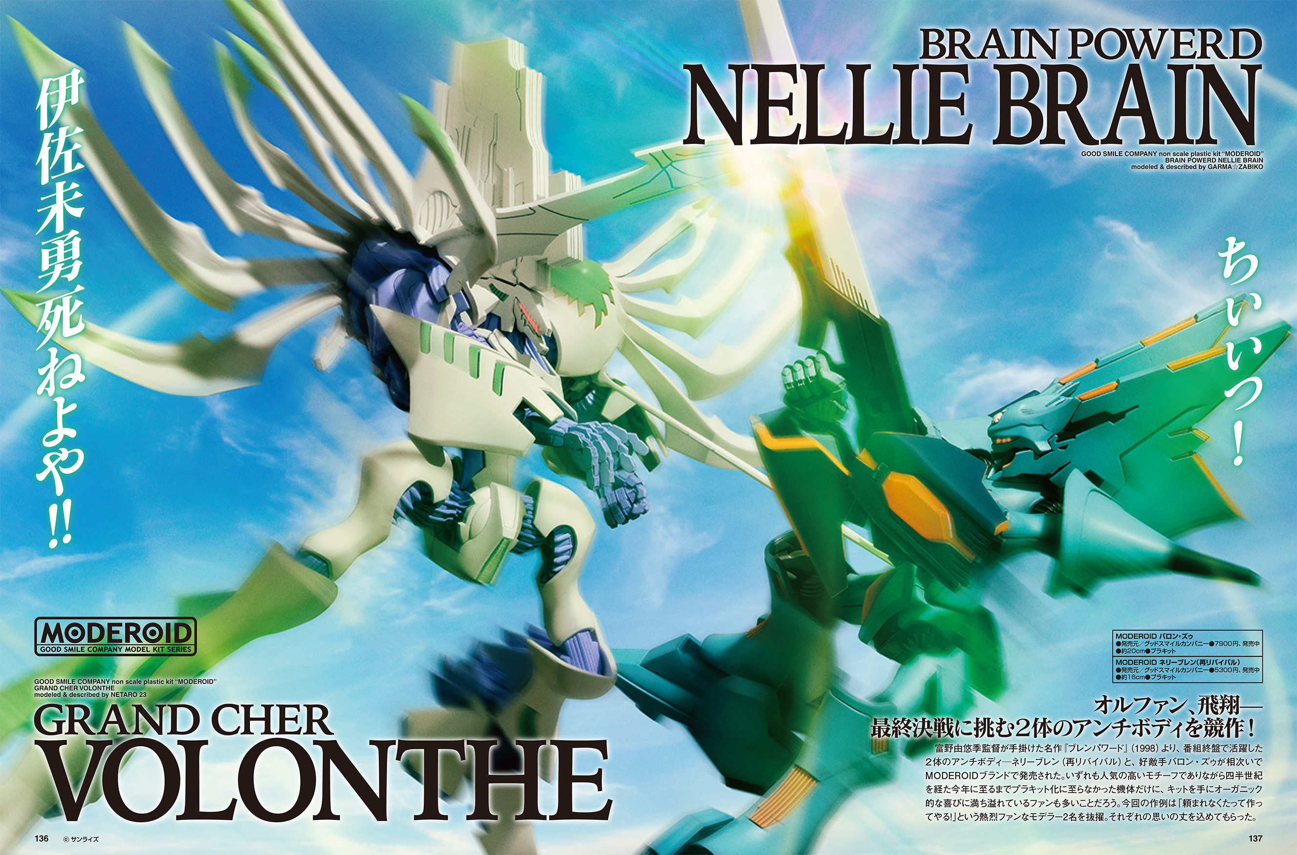 アニメ終盤で活躍した2体のアンチボディ─「ネリーブレン(再リバイバル)」「バロン・ズゥ」を、2人のプロモデラー・ガルマ☆ザビコ&寝太郎23が競作!「頼まれなくたって作ってやる!」という作品の熱烈ファンなモデラー2名に、それぞれの思いの丈を込めてもらいました。