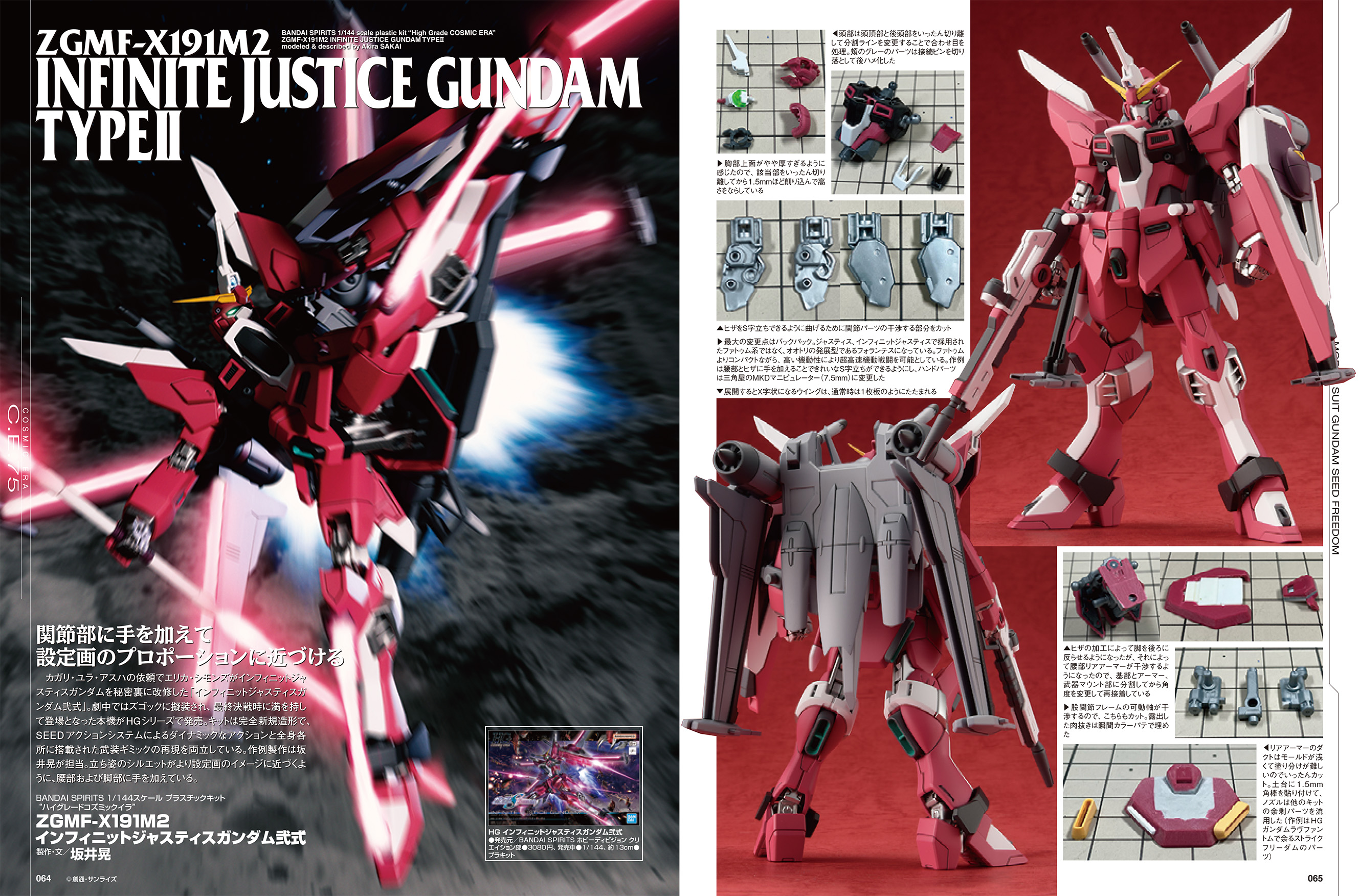 『機動戦士ガンダムSEED FREEDOM』より、「ZGMF-X191M2 インフィニットジャスティスガンダム弐式」をプロモデラー・坂井晃が製作。立ち姿のシルエットがより設定画のイメージに近づくように、腰部および脚部に手を加えております。