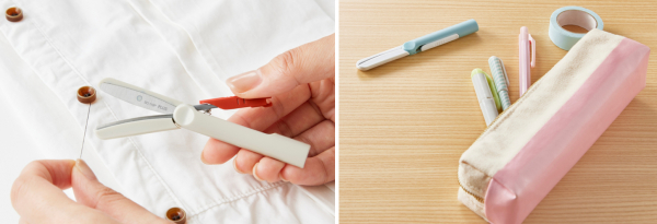 軽い切れ味が特長の"ベルヌーイカーブ刃"を採用。常に最適な刃の開き角度を保ち、刃の根元から先端までどの位置でも対象物をしっかりキャッチ。外出先での服のほつれ糸や、プリント・お菓子袋の開封、洋服のタグなど、さまざまな用途に重宝します。