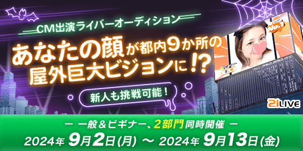 21LIVEの顔として有名になりたいライバーは、今すぐ「CM出演ライバーオーディション」にエントリーしてくださいね!