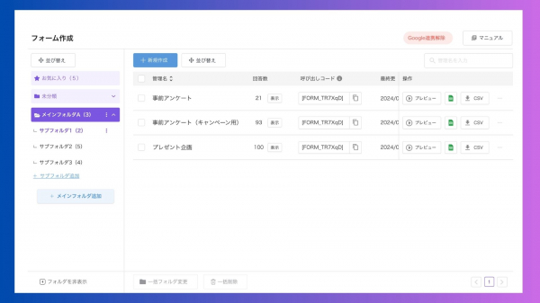 アップデートにより、フォーム作成一覧ページのデザインが刷新されました。
