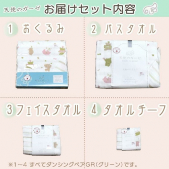3)天使のガーゼ ダンシングベア フェイスタオル
