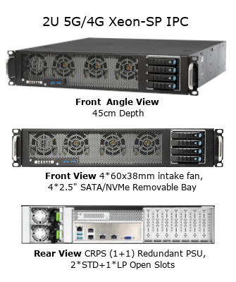 (2U ラックマウント インダストリアルPC, LGA-4677 5th/4th Gen Xeon SP, Intel C741 PCH, 4*PCIe5.0/CXL1.1(X16)バス, DDR5 ECC RDIMM/3DS RDIMM, 2*M.2 NVMe SSD, 4*2.5インチSATAデバイス, 2*10GbE+2*GbE, 850W 80Plus プラチナ規格 Flex ATX電源)