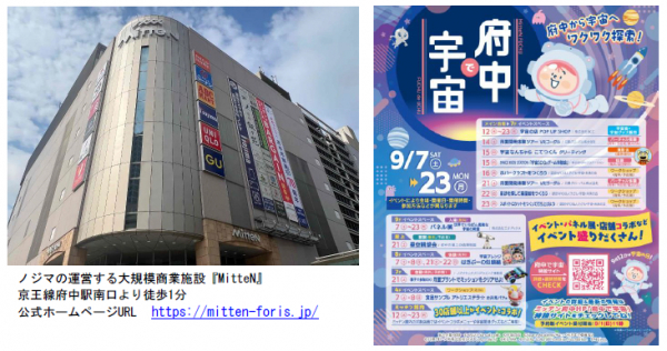 株式会社ノジマ(神奈川県横浜市、代表執行役社長:野島 廣司/以下、ノジマ)が運営する大規模商業施設『MitteN』(ミッテン、東京都府中市)において、2024年9月7日(土)より特別催事として、宇宙イベント“府中で宇宙”を開催いたします。