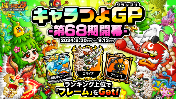 株式会社アソビズム(本社:東京都千代田区、代表取締役:大手智之)は、App Store・Google Playにて好評配信中の『城とドラゴン』で、2024年8月30日(金)より「キャラつよグランプリ第68期」を開催いたします。