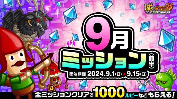 8月30日(金)から“キャラつよP”を競う「キャラつよグランプリ」の第68期が開幕!今回はコマイヌや竜魔導士ブルードなど15キャラを対象とし、ランキング上位者にはキャラアイコンを装飾できる“フレーム”が贈られます。また、規定の“タッグP”や“トリオP”に到達するごとにドラゴンメダルを獲得できる「みんなで到達ミッション」も3日間開催。さらに9月1日(日)からは、ミッションクリアで最高1,000ルビーなどがもらえる「9月ミッション(前半)」が開催。前半・後半のミッションを合わせて規定数クリアすると1,000~3,000ルビーが当たる「ご褒美アバたま」への挑戦も可能となっています。報酬獲得を目指して、たくさんバトルを楽しみましょう!