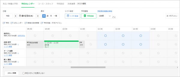 たとえば、複数人で運営している場合、スタッフのシフトや予約状況を一覧で把握が可能です。