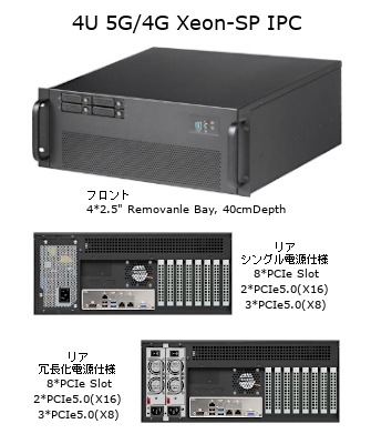 (4U ラックマウント インダストリアルPC, LGA-4677 5th/4th Gen Xeon SP, Intel C741 PCH, 2*PCIe5.0(X16)バス+3*PCIe5.0(X8)バス, 512GB DDR5 ECC RDIMM/2TB ECC 3DS RDIMM, 10*SATA, M.2 NVMe SSD, 4*U.2 NVMe SSD, 2*GbE, 850W 80Plus ゴールド規格 フルプラグイン ATX電源)