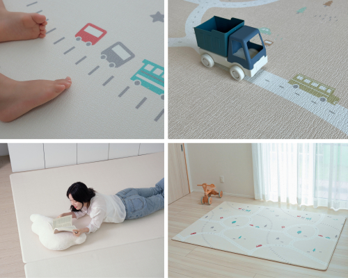 また、リバーシブル仕様で、2つの異なるデザインを楽しむことができ、お部屋の雰囲気や気分に合わせて模様替えが可能です。柔らかな雰囲気の無地面を使用すればインテイリアと調和したおしゃれな部屋にすることができ、お子さまが成長した後もデザインを気にせず長く使えると期待されています。高密度PVC素材により、皮膚炎やアレルギー対策も万全で、安心して使用できるプレイマットです。