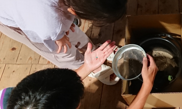 特別セミナーでは、海辺の砂をふるいにかけ、